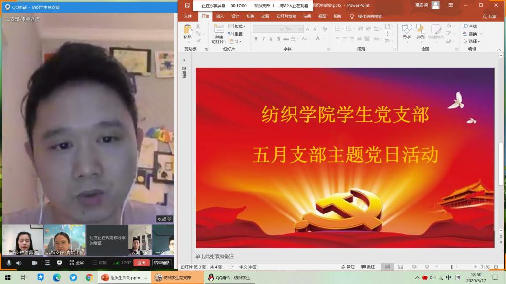 学生党支部组织开展了“激扬战‘疫’”为主题的支部党日活动,本次活动在学生党支部QQ群中以群连线视频的方式开展,成人短视频