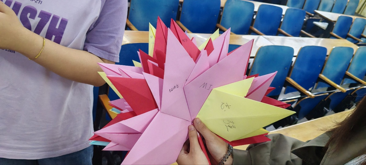 活动伊始,全体成员共同参与“红枫映新学,笔墨启新程”暖场小游戏。大家亲手折叠枫叶,并在叶片上写下新学期的关键词。随后,同学们将枫叶拼接在一起,组成一幅完整的红叶图景。这一环节不仅书写了新学期的愿景,更在协作中增进了彼此的了解,凝聚了集体的温暖。