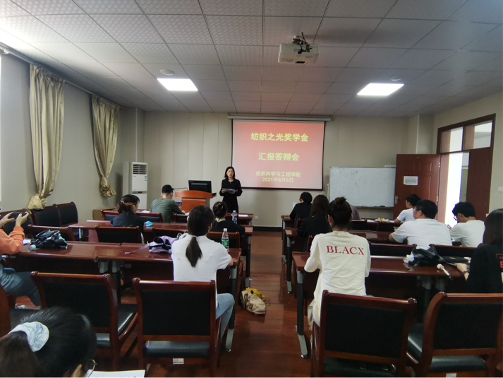 于5月8日14:00在8h502举行纺织之光奖学金汇报答辩会。答辩会由辅导员严蔷薇主持,成人短视频