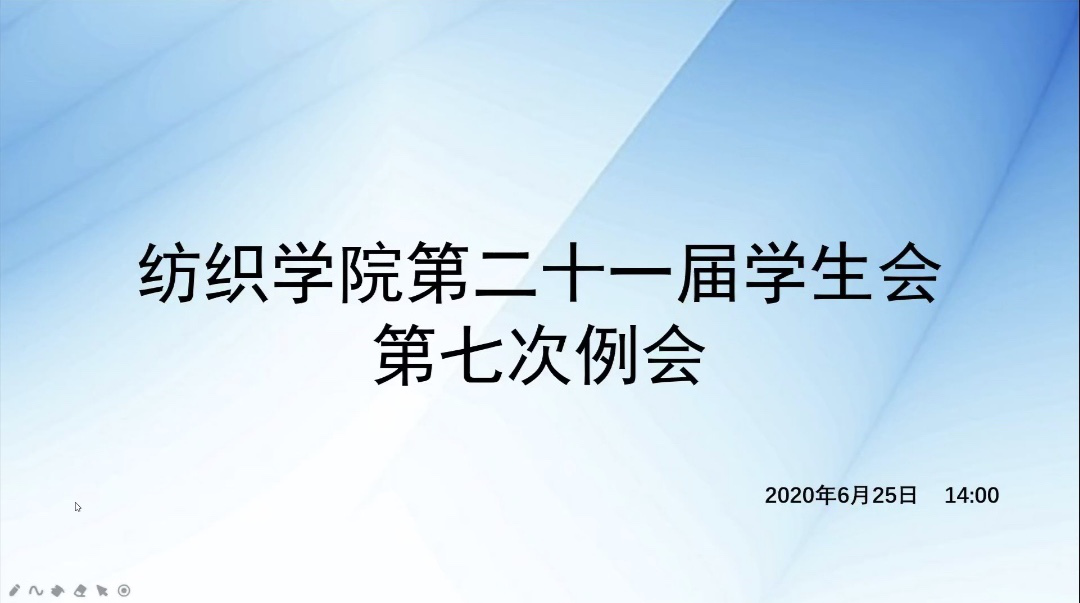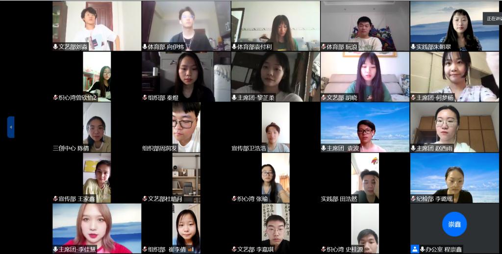 学生会工作概况进行总结,并列举了学生会的各项成就,对大家进行赞扬鼓励,对学生会的未来作出展望,希望大家能不忘初心,砥砺前行,继续保持纺院学生会有爱的氛围,让学生工作的开展更上一层楼,一起和纺院向更远的未来迈进。会议尾声,纺院团委、学生会成员在主席的带领下进行线上合影。