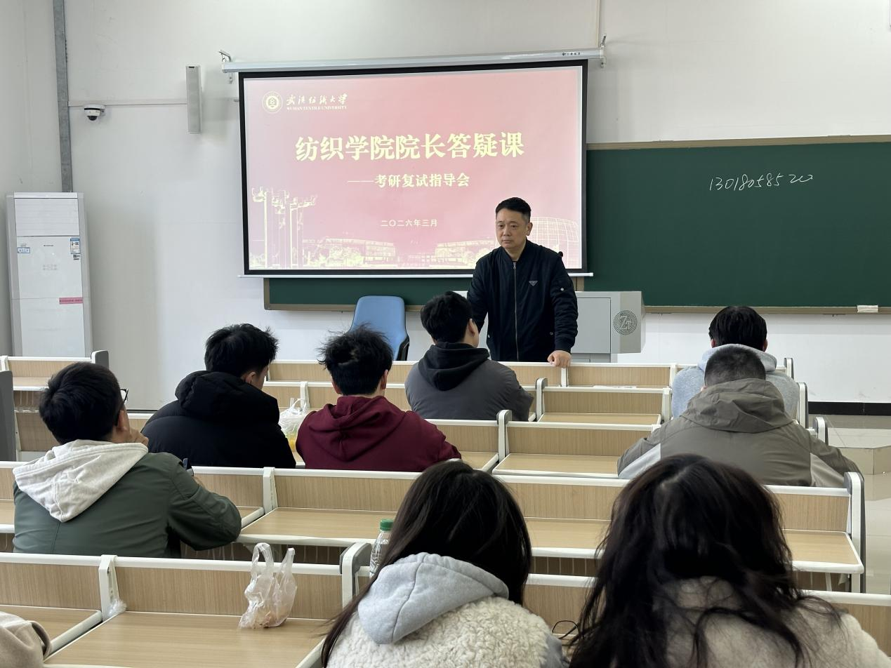 姜会钰结合学科特点,为学子分析复试考察重点,强调专业基础的重要性,指导学生系统梳理纺织材料学等核心知识体系,力求以扎实功底从容应对复试中的专业提问环节。他指出,随着纺织行业向智能化、绿色化、功能化转型升级,高层次人才需求愈发迫切,并解析了学科在研究生招生中的政策倾斜,鼓励学子坚定读研信念。