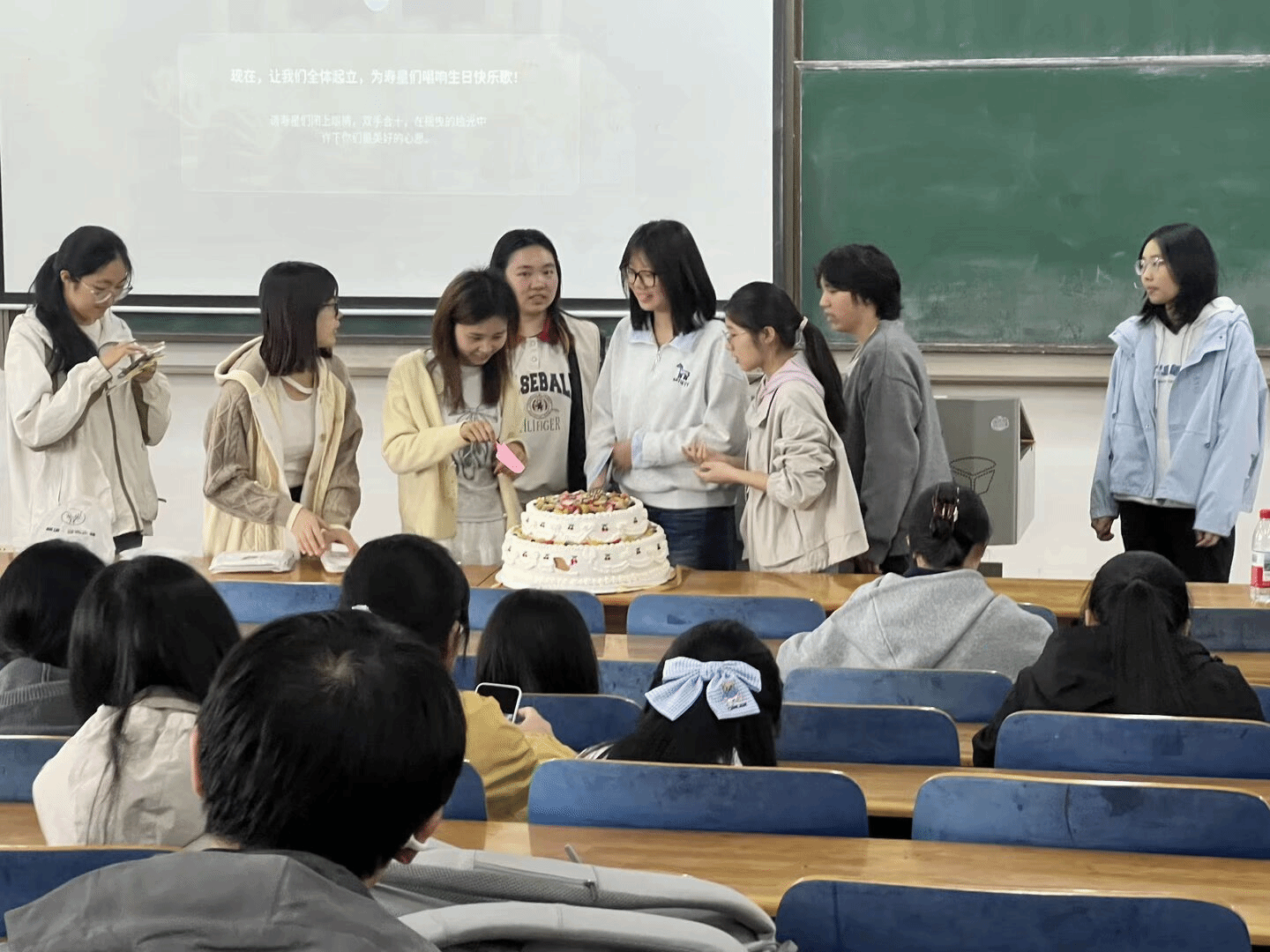 活动尾声,师生代表共同切开象征团结与甜蜜的生日蛋糕。在场同学互送祝福,希望每一位同学如四月的星辰,在智慧与希望的光辉中熠熠长明。也希望大家带着这份集体的温暖,在未来的学习与生活中继续携手同行。在场同学纷纷表示,这场生日会让他们深切感受到了家一般的温情和集体的关怀,也成为了这个春天最难忘的记忆片段。