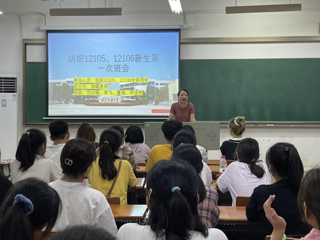 会议伊始,各个班级点名确保新生均到现场参加班会后,由班主任寄语新生,主要强调了安全意识和防范诈骗意识,避免陷入诈骗陷阱。同时也向新生们大致介绍了大学生活的多样性,并对他们即将开始的大学生活寄予殷切的期望和要求,鼓励大家努力学习,珍惜时光,不浪费大学生活的每一天,接着对纺织专业做了简单的介绍。其中,陈海书记还参与到各班班会,给同学们专业引导,让同学们对本专业有明确的认知,端正学习态度。接着是新生以及副班主任的自我介绍,通过自我介绍拉近彼此之间的距离,活跃班级气氛。副班主任们对新生们提出一些大学生活的建议,不断充实自己,切勿虚度光阴。班会最后,各班班级进行了临时负责人的推选,经过同学们的自荐和票选后选出了两位班级负责人,对班级接下去一段时间的学习生活进行管理,并且由各班副班主任带领新生观看并学习了成人短视频