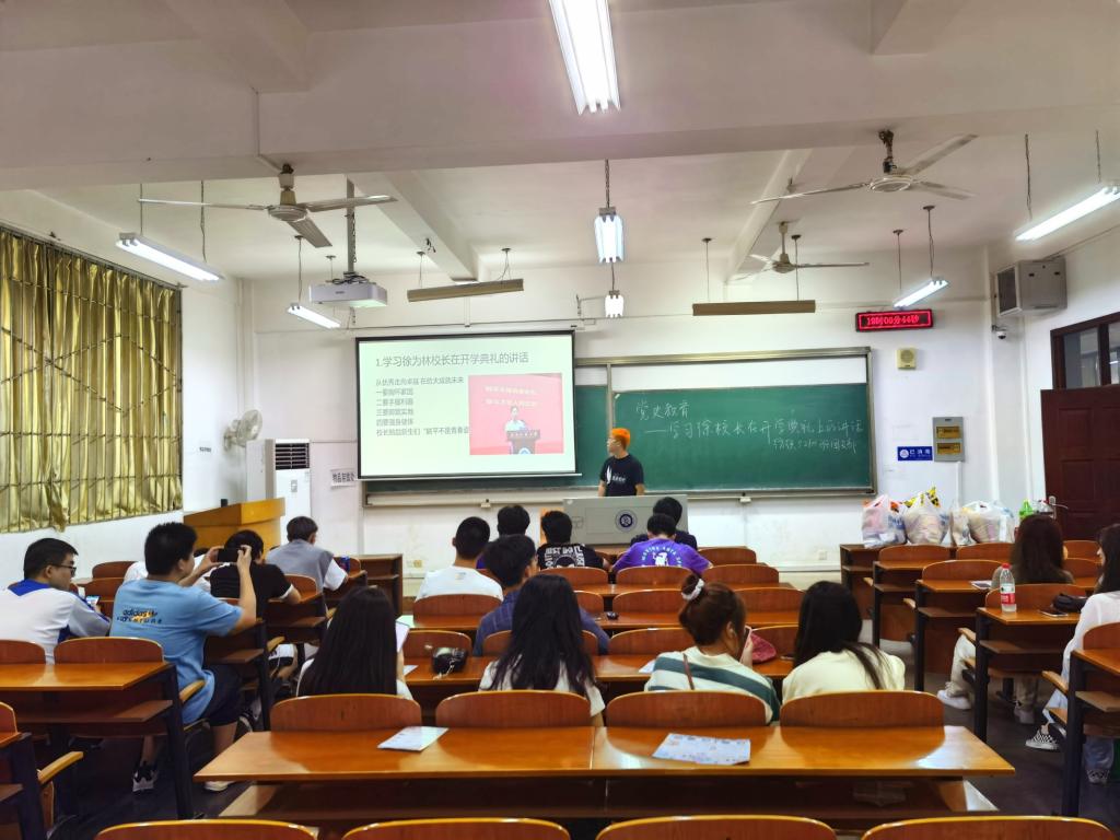2021级新生在年级辅导员张竣青、各班班主任老师、班长的统一带领下,以班级为单位在3号教学楼崇志楼各教室集中学习了《从优秀走向卓越 在纺大成就未来》——校长徐卫林在2021级新生开学典礼上的讲话。