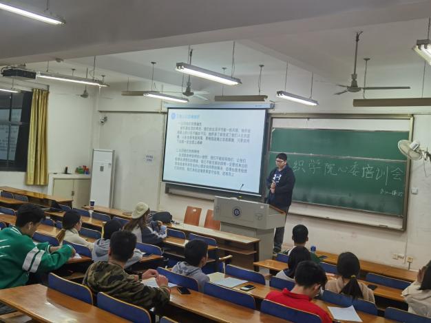 团委学生会织心湾在三栋教学楼320教室开展了本学期第一次心理委员培训。本次会议由部长胡靖贤主讲,全体心理委员参与。