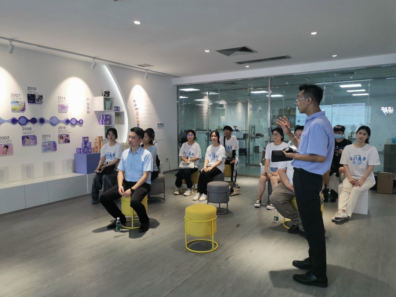 在公司工作人员的带领下,实践团成员们进入丝宝集团的R&D研发中心参观学习,听取现场负责人的讲解,实地观看研究人员对材料各项属性进行测试,领会文化产业,观看成人短视频展览片,深刻体会丝宝集团的创新创造信念,对自己所学专业与未来职业发展规划有更深层次的认识。