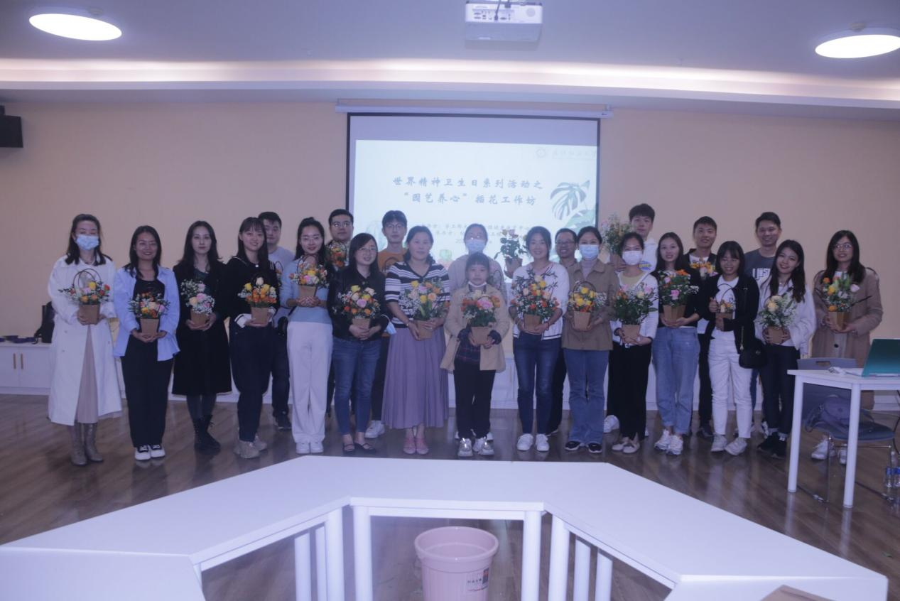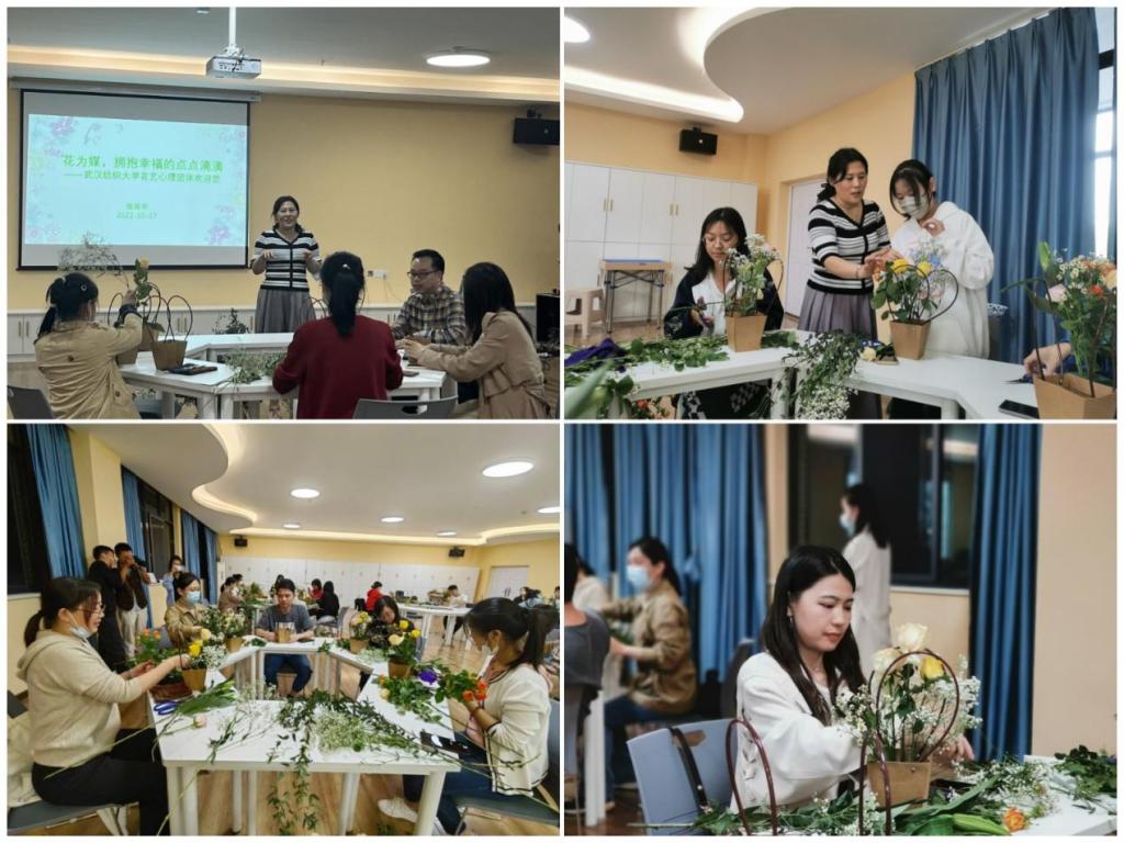 承办的世界精神卫生日系列活动之“园艺养心”插花工作坊活动在大学生活动中心205顺利举行。本次活动特邀华中农业大学大学生心理健康中心张延华副教授进行指导。