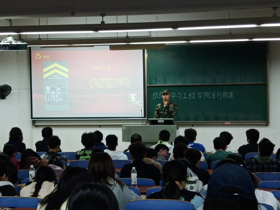 通过组织退伍大学生士兵开展分享会,以“身边人话军营”的形式,进一步树立了青年学子“爱国拥军”的思想认识,激励了同学们响应祖国召唤、投身强军伟业的参军热情。
