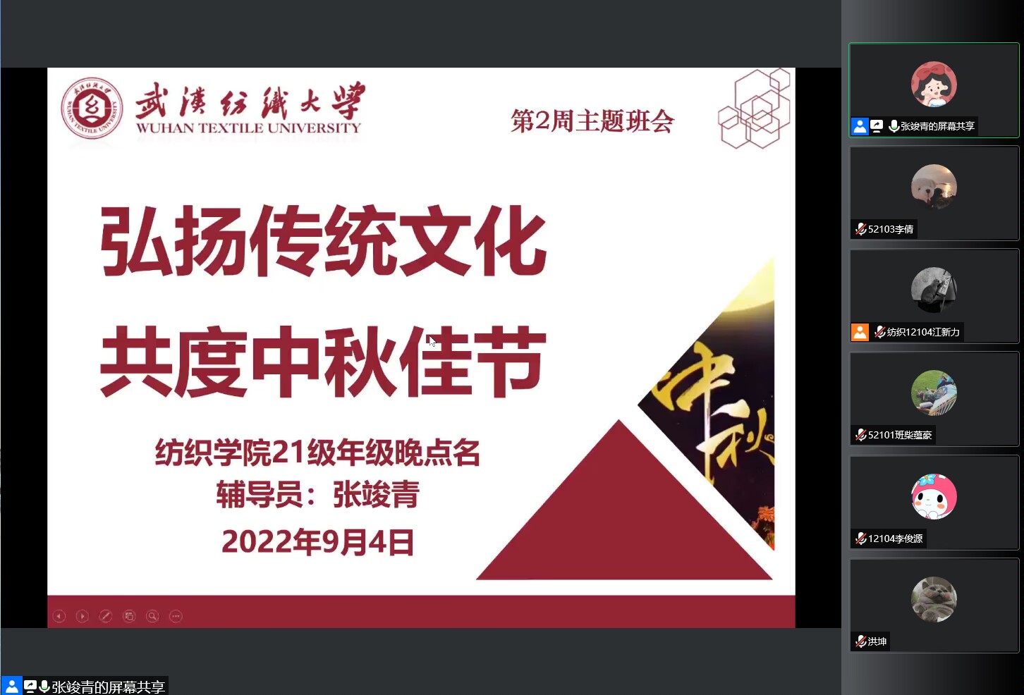 为帮助学生尽快适应学校生活,增强学生安全意识、提高其思想认识,积极配合学校疫情管控要求。9月4日,我院21级召开线上新学期年级大会,会议由辅导员张竣青主持,全体21级同学共同参与。