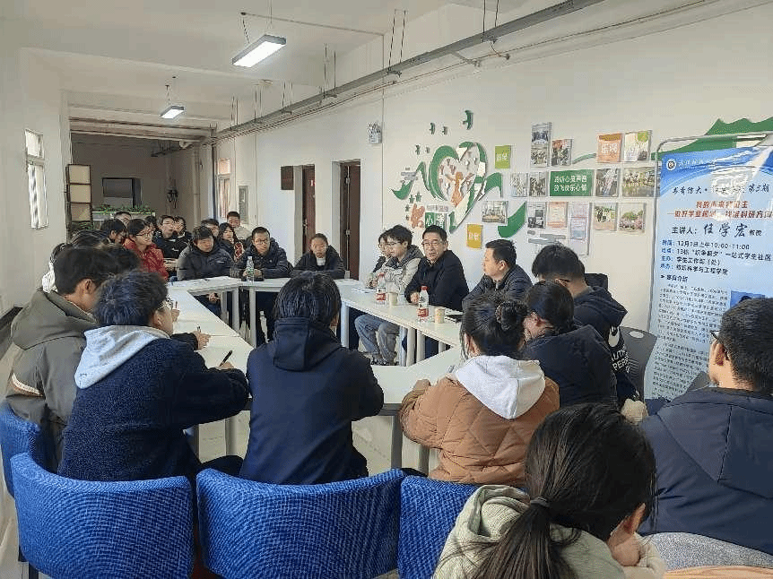二级教授任学宏应邀开展座谈,23级辅导员向婷、余国铖以及46名学生代表参加活动。活动由成人短视频
