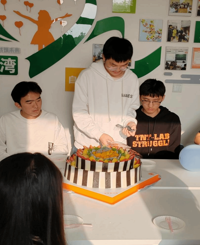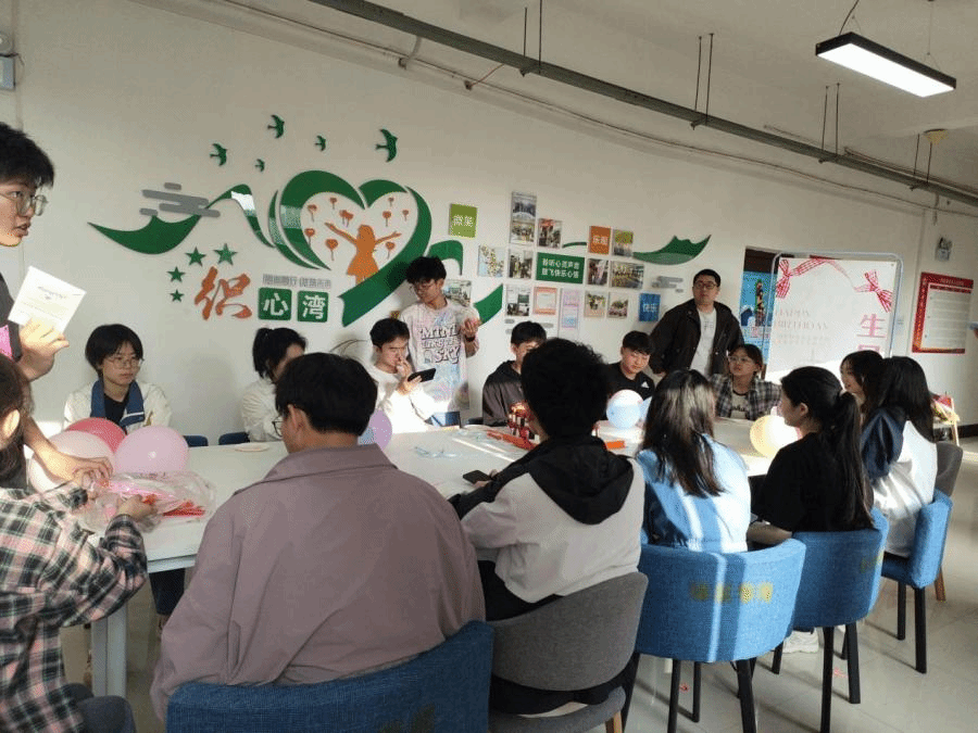 最后,大一年级辅导员余国铖老师及“织心湾”全体同学一同为过生日的同学们齐唱生日歌。在歌声中,“小寿星”们一同吹蜡烛、许愿、拍照留念。老师与同学们一同分享蛋糕,共同分享今天的快乐。在同学们品尝蛋糕的同时,“织心湾”也为同学们准备了丰富有趣的小游戏,让同学们在欢声笑语中舒缓压力,放松心情。