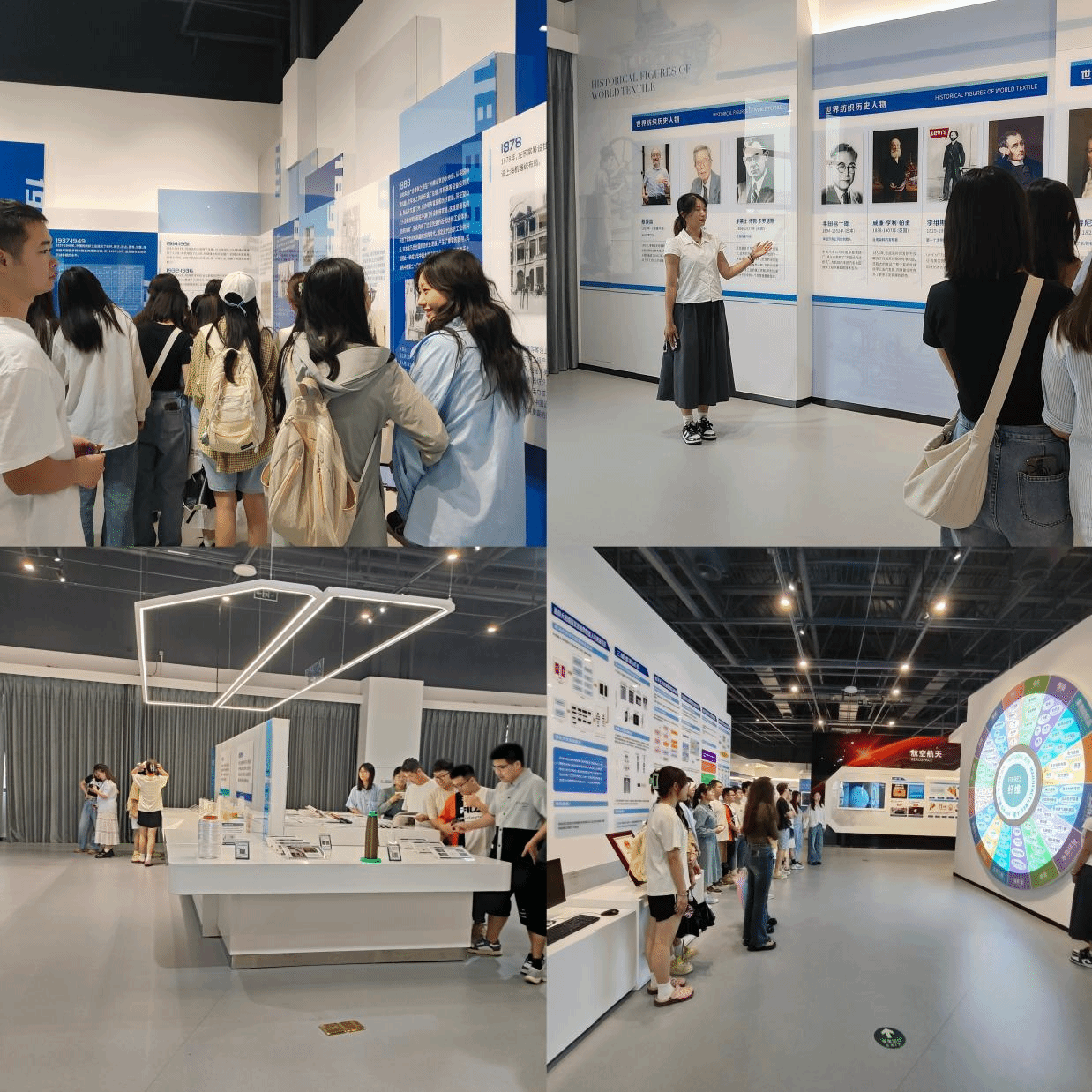 在讲解员的耐心讲解下,同学们已经沉浸在纺织科技的海洋里遨游,现场很多同学还参与了互动展示,亲身体验了纺织技术的魅力,从而增强了对纺织行业的更深入了解。