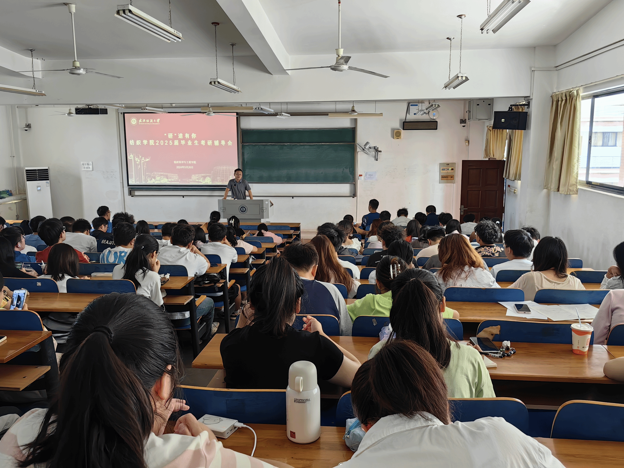 过程中,蔡院长对比多所纺织专业考研院校,从科研水平、师资力量、报考难度等多方面对比,充分讲述两者差异,依据学生各方面情况给出择校意见,并建议学生注重个人定位,充分认识自己,根据自身实际情况合理选择院校,同时多给自己积极的心理暗示,不为外物所扰,坚定信心。同时,蔡院长特别强调了考研对于个人发展的深远意义,指出考研不仅是学业的进一步深造,更是提升自我竞争力的重要途径。“考研是一个系统工程,不仅要学好知识,还要学会管理时间。希望大家能够制定一个切实可行的学习计划,并且坚持下去。”
