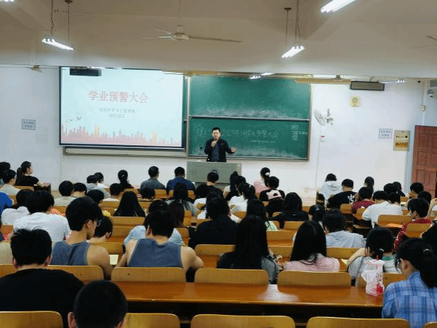 学生学业预警实施办法(修订)》,解读了学校对于学业预警的评判标准及制度要求,并结合同学们的预警情况进行了分析,和大家一起找原因、想办法、促提升。他强调,同学们要对学业预警情况引起重视,及时采取针对性举措,为顺利毕业打下坚实基础。一要正视问题,找准症结。要结合自身学习情况,认真反思自己在时间投入、学习方法、学习效率方面的不足和短板。二要做好规划,积极执行。要积极主动投入学习,合理制定学习规划,明确各阶段的学习目标和学业任务,一步一个脚印攻克学业上的难题。三要主动沟通,奋起直追。对于学习中遇到的困难,要主动和辅导员、班主任进行沟通,寻求老师们的帮助和指导。负责老师要根据学生情况进行针对性帮扶,引导学生树立信心、全面发展。
