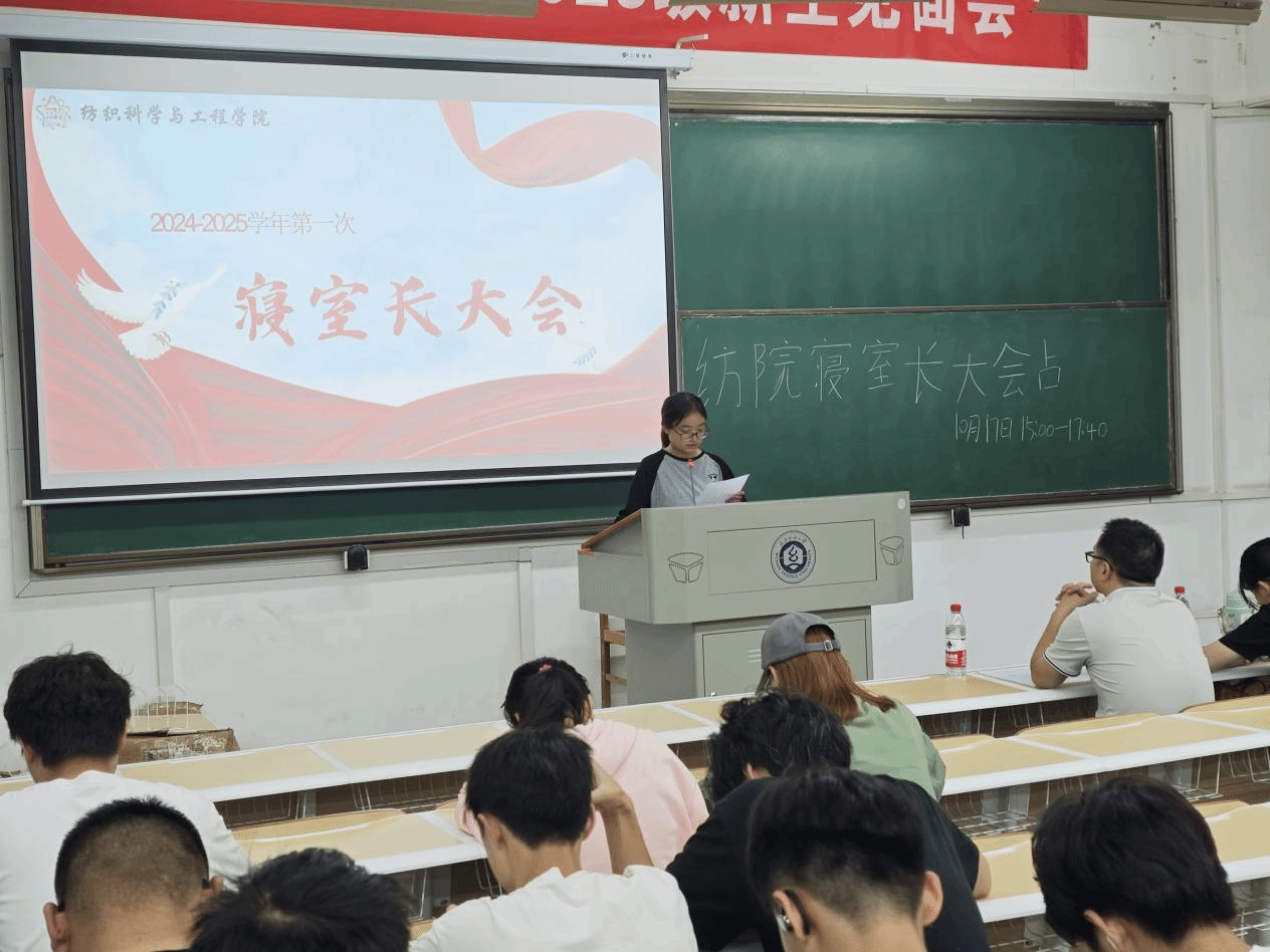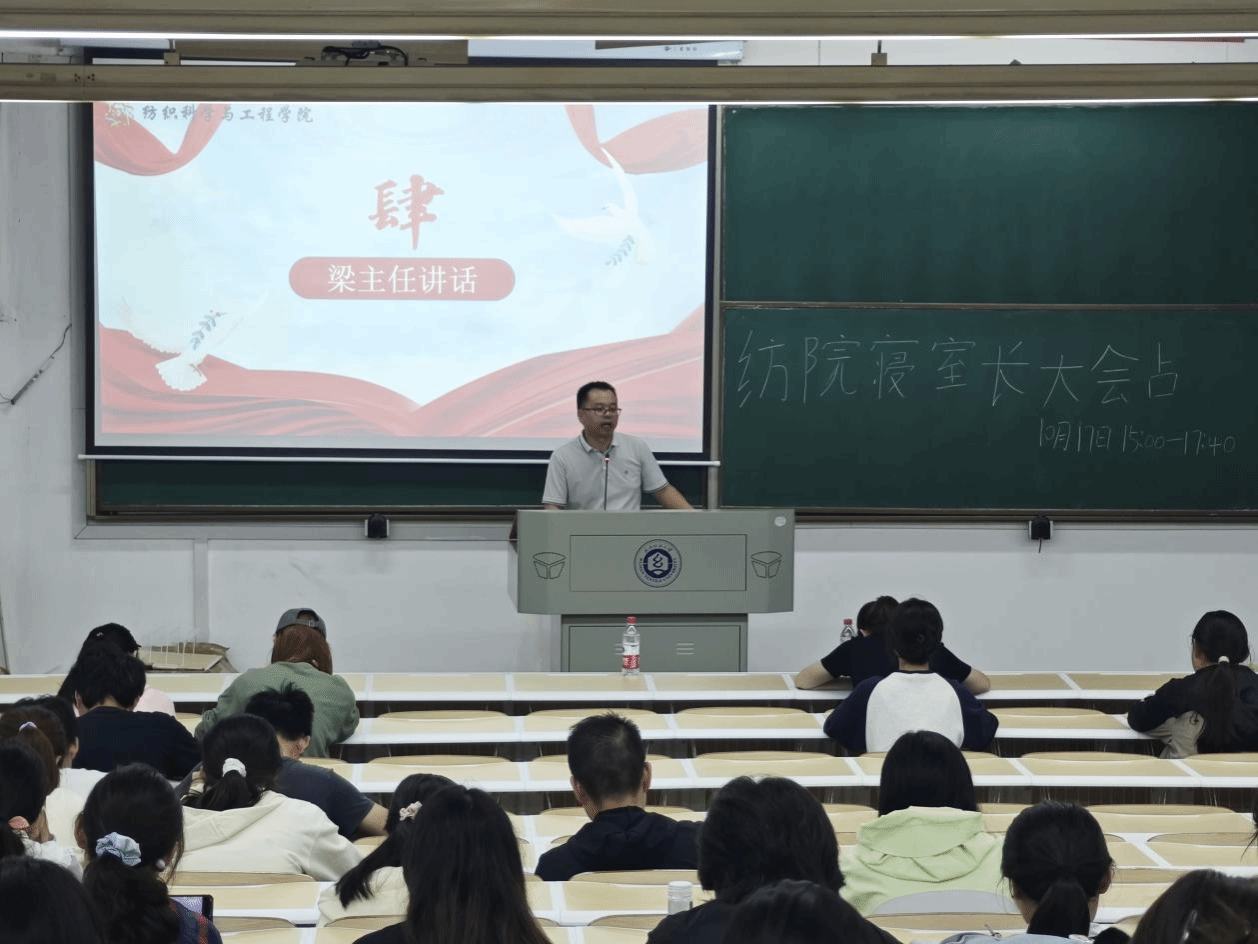 大会开始前,由宿管会成员赵润上台介绍本次大会的目的和重要性,并对参会的各位寝室长和每班心理委员表示欢迎。随后,新生寝室长上台,分享在纺大生活第一个月的想法和感受。之后,由织心湾进行心理委员培训大会,进一步提高心理委员的责任心以及相关能力,明确自己的工作职责并意识到保持心理健康的重要性。最后由梁祥云进行总结讲话,强调防火防盗、个人隐私保护、网络安全等,他指出寝室是校园文化的窗口,是所有同学大学期间生活时间最长的地方,是所有同学表现得最原生态的地方,也是最容易发现学生个人问题的地方。希望大家能相互包容,培养良好的生活习惯,行成独特的寝室文化。