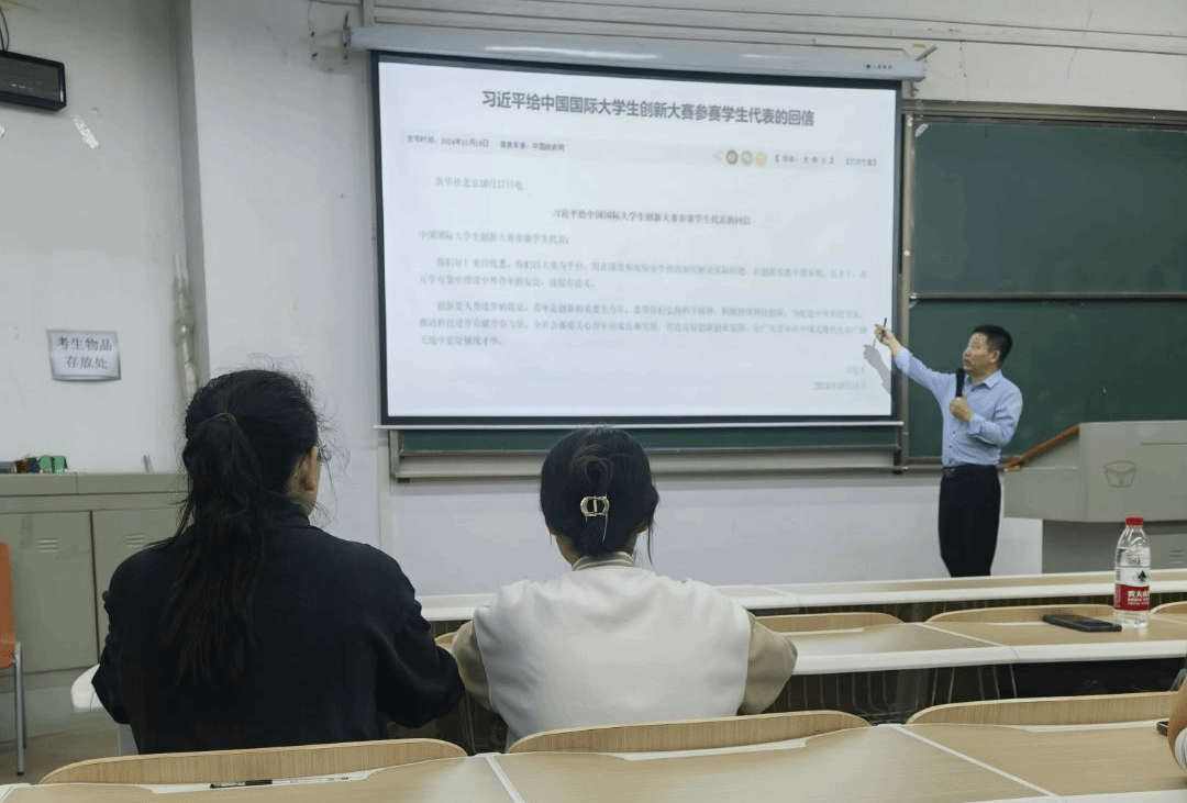 三创中心副主任黎征帆,“武汉十佳创业导师”张福宏教授近日在03-T202为全体24级本科生进行竞赛及有关创业项目选择的指导讲座。