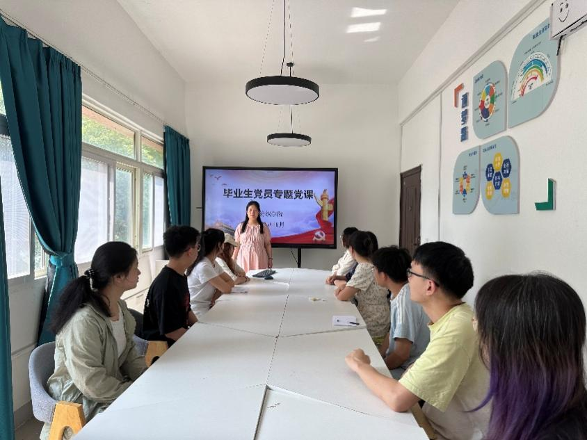 于6月4日下午在13栋2楼002会议室举行2025届毕业生党员离校前专题党课。本次活动通过专题党课讲授、讲解组织关系转接、互动交流等多种形式,为即将踏上人生新征程的毕业生党员讲授了“最后一课”。