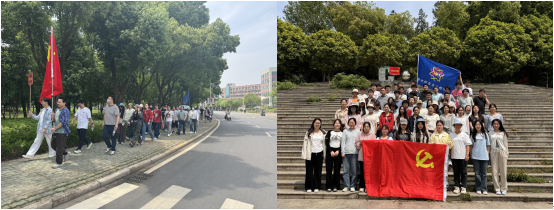 中午时分,全体成员在8号教学楼旁集结完毕,在迎风飘扬的党旗引领下,满怀激情地踏出校门,沿着公路整齐划一地向江夏一中附近的花山进发。行进途中,同志们积极交流学习和科研中的趣事与心得,相互启发,共同进步。