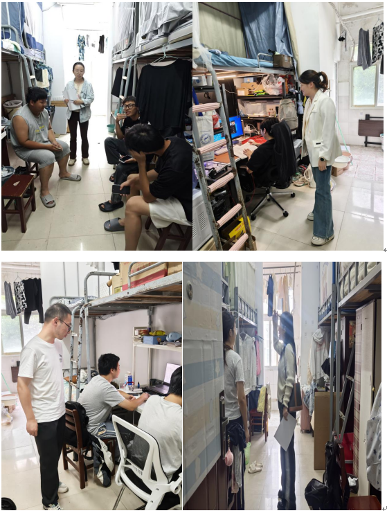 在安全方面,院领导、辅导员老师细致查看宿舍环境卫生、用电安全、物品摆放等情况,重点排查违规电器使用、私拉乱接电线等安全隐患,提醒学生要增强安全意识,杜绝安全事故发生。针对检查中发现的部分宿舍存在的卫生死角、物品堆放杂乱等问题,老师们现场提出整改意见,要求相关宿舍立即整改,并确保后续跟进落实。