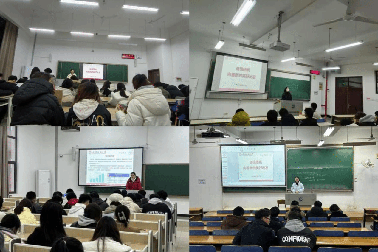 大事,并鼓励大家积极分享寒假社会实践见闻,畅谈新学期学业发展规划。同时,勉励同学们调适情绪心态、调整生活状态、鼓起奋斗姿态,夯实专业知识,培育综合素质,树立远大理想,以拔节向上的姿态投入到新学期的学习生活。