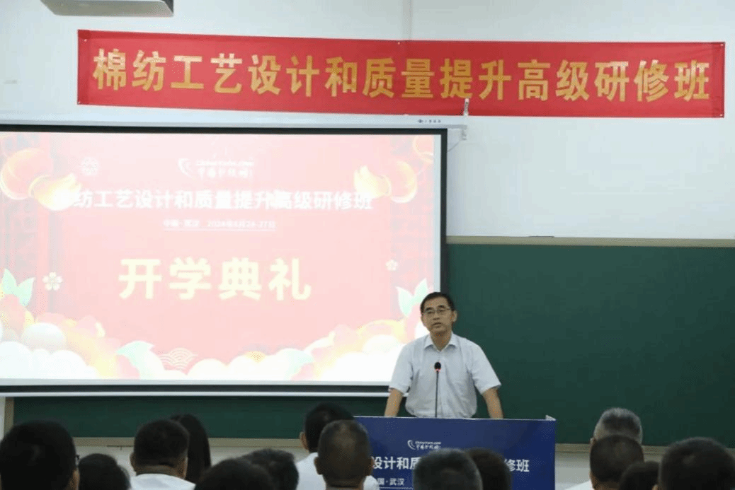 典礼上,姜校长在致辞中表达了对全体学员的诚挚欢迎,强调深入探讨纺织技术理论、探索纺织技术在企业发展中的重要性,表示此次研修班不仅是对学校教育能力的验证,也是深化产学研合作的重要一步。鞠彦军总裁在致辞中盛赞了武汉纺织大学在纺织领域的卓越贡献,如前不久再次登上月球的五星红旗,正是由徐卫林院士团队研发。
