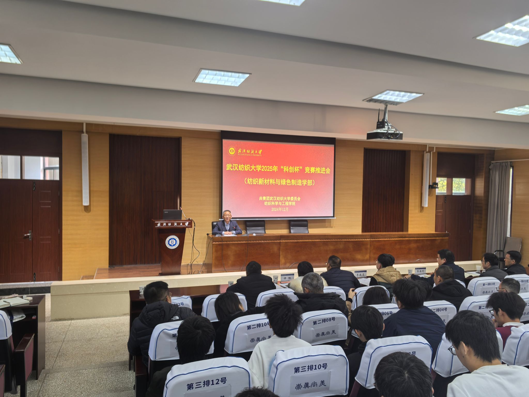 12月6日下午,学校2025年“科创杯”竞赛(纺织新材料与绿色制造学部专场)推进会在阳光校区行政楼学术报告厅召开。校党委副书记、副校长罗锦银出席会议并讲话,校内外专家、校团委等相关职能部门领导、纺织新材料与绿色制造学部各成人短视频 负责人、科创杯竞赛师生及相关成人短视频 师生代表参加会议。成人短视频 院长蔡光明主持会议。