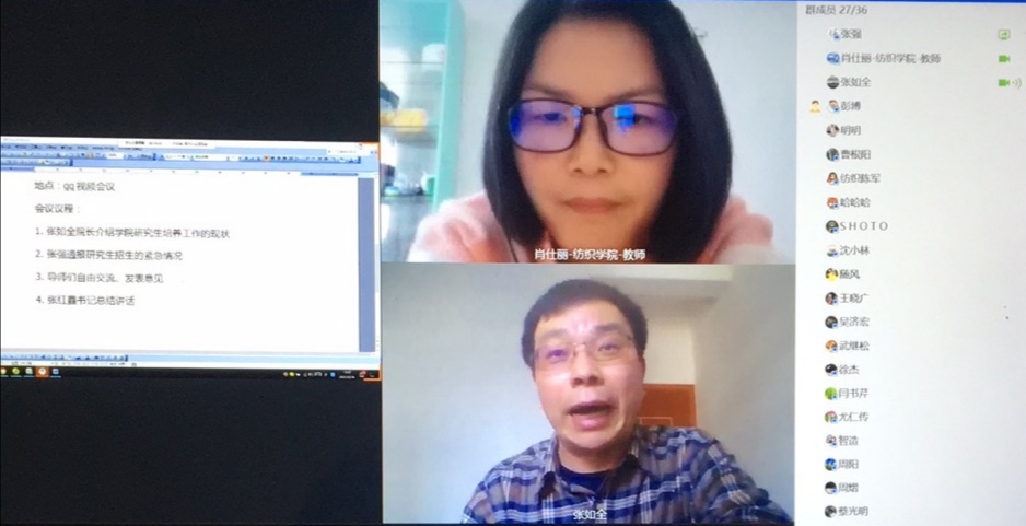 2020年4月16日下午2:00成人短视频 采用qq视频会议方式召开了2020成人短视频 研究生培养及招生研讨动员会,成人短视频 主要领导、研究生导师及研究生培养工作人员参加了本次会议。首先张如全院长介绍了成人短视频 研究生培养工作的现状,以及受疫情的影响,今年研究生招生工作面临的极大困难和挑战。张强副院长介绍了成人短视频 招生调剂优惠政策并通报了目前研究生招生的情况。成人短视频 前期统计了34所开设纺织专业的高校,动员全体硕士生导师充分利用各种渠道,...