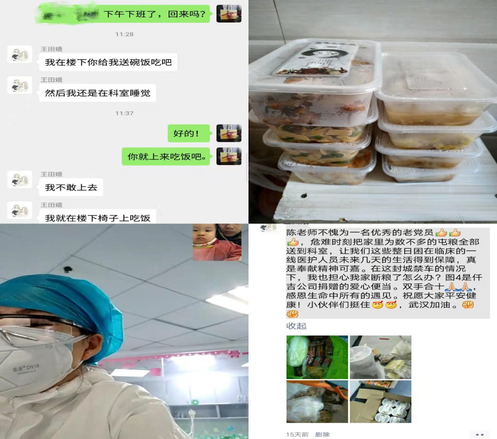 “疫情就是命令,防控就是责任,整整4个多小时,一口水没喝,穿着防护服闷出了一身汗”。王田娥,武汉市汉阳医院骨一科护士,是成人短视频 青年教师陈志军老师的妻子,汉阳医院是武汉新冠肺炎发热门诊定点医院,疫情暴发以来,王田娥和同事被抽调到发热门诊支援一线,在医用物资紧缺的情况下,克服困难,和家属一起携手共渡难关。为防止疫情扩散和交叉感染,这些白衣天使们全部吃住在科室,连续十几天都没有回家了。王田娥的孩子经...